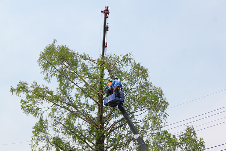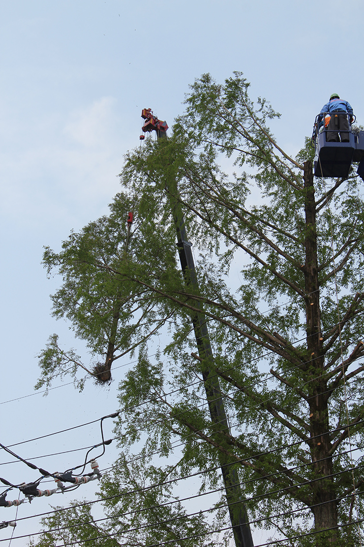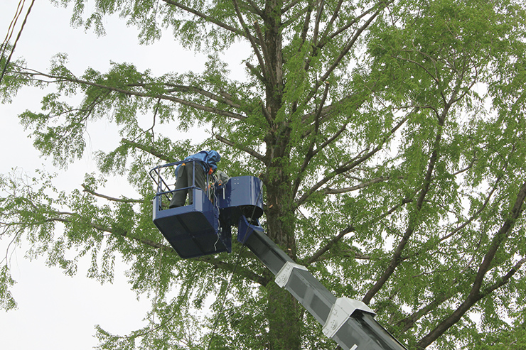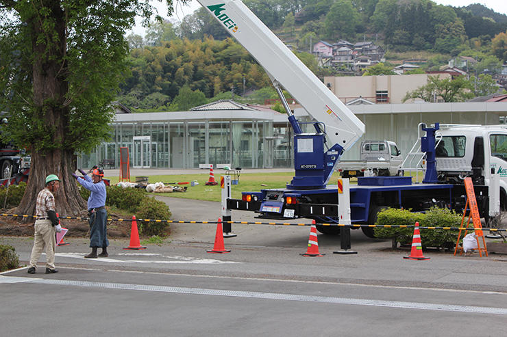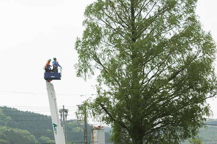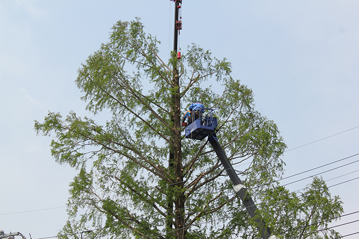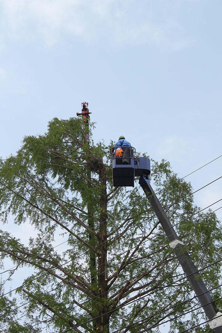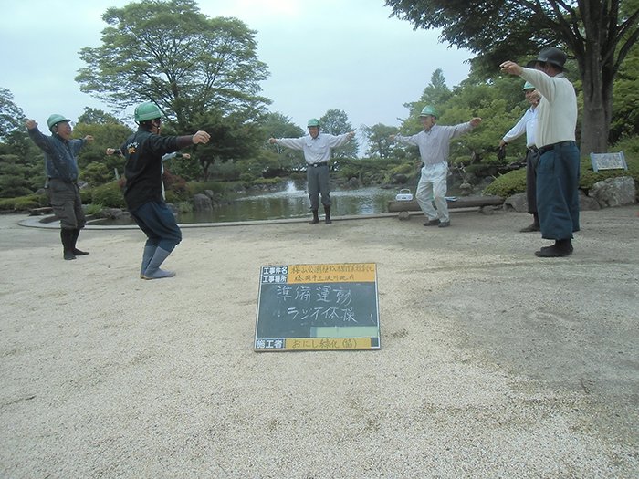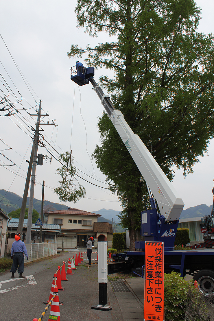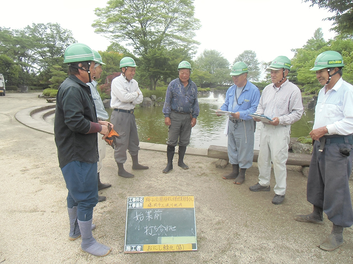 桜山公園内にある第一の広場(池のある日本庭園)第二の広場(茶室と三波石を使った見本庭園)第三の広場(イベントなどで使われる 芝生広場)の寄植・生垣・玉物の刈込や松・桜・楓・ツツジ等の植栽木の管理業務を行っております、その様子を写真でご紹介します。 スライドは日本庭園の四季 下の写真は業務している様子です。 資格を持った経験豊富な組合員が、樹木剪定・樹勢回復・危険木の伐採・高所枝打ち作業・刈払機作業等の維持管理業務を行います。
