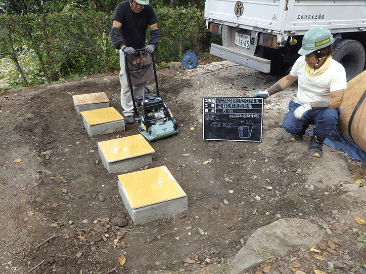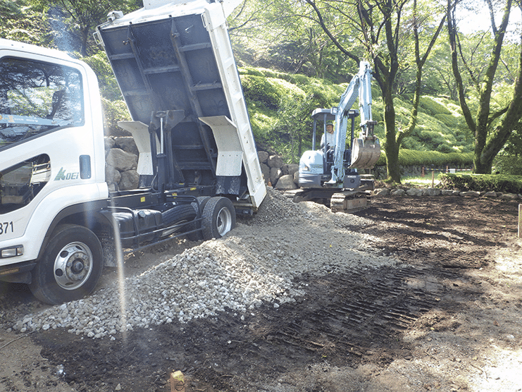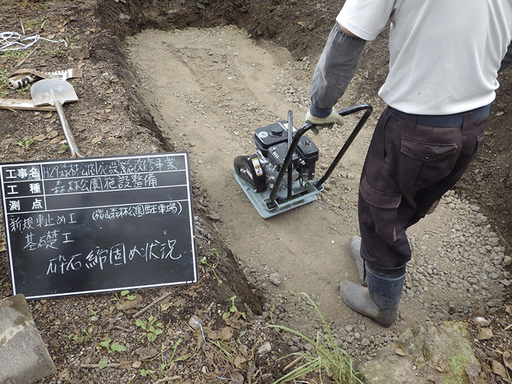 下のスライドは駐車スペース造成している様子です 。