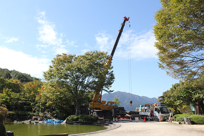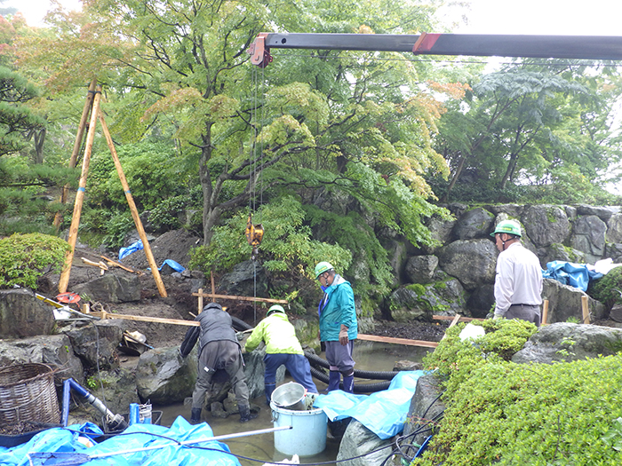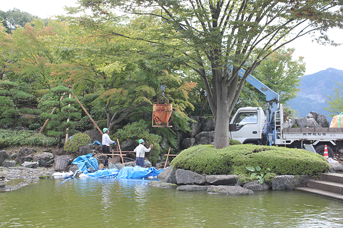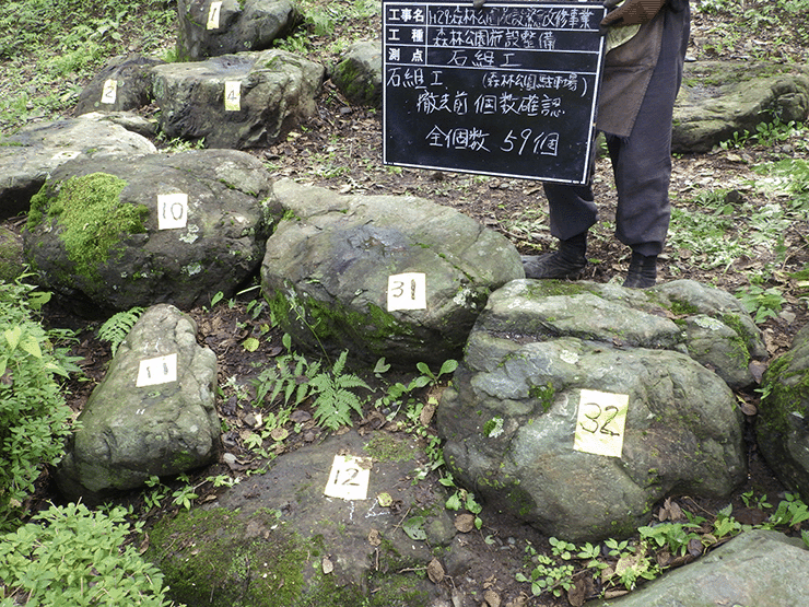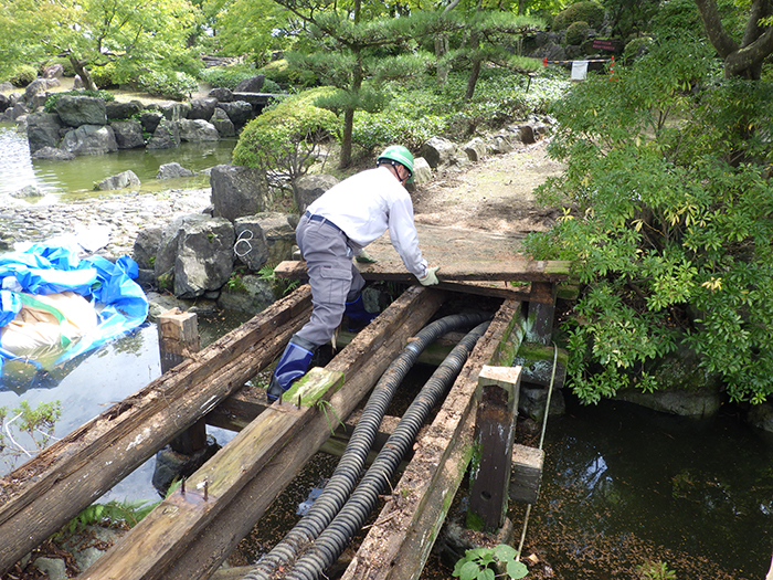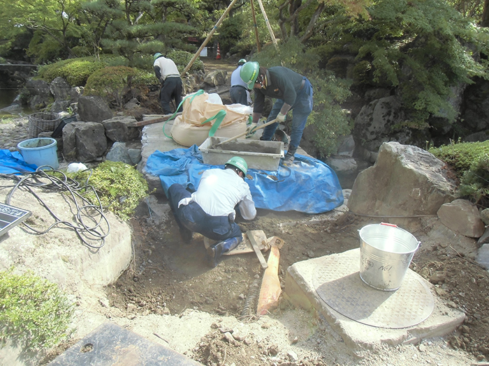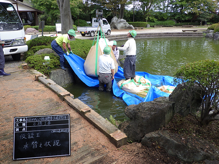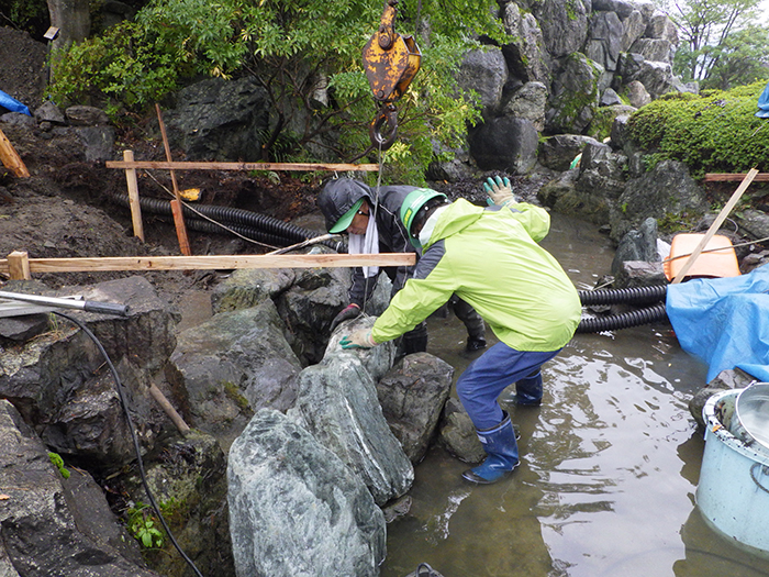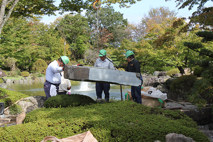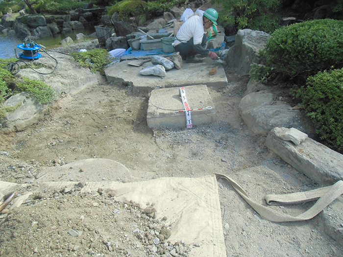 桜山公園内日本庭園の木橋が老朽化した為、地元三波石を使った石橋を設計施工した事例のご紹介です。