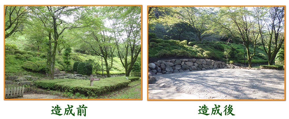 桜山公園第2の広場内に駐車スペースを造成し茶室やトイレの活用や見本庭園見学の利便性改善が